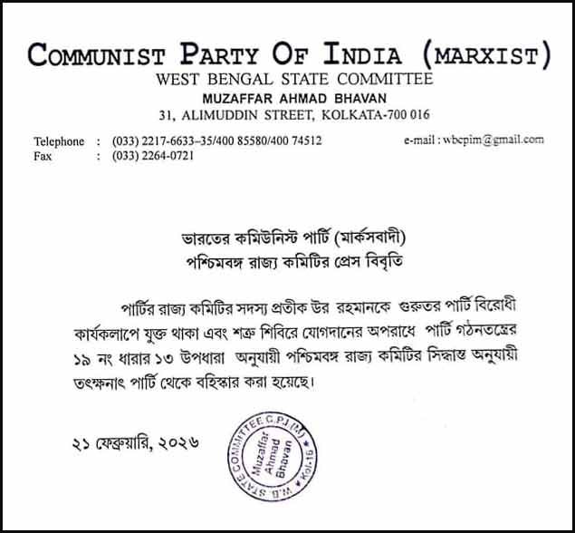Pratik-ur recently announced in a letter that he was leaving the CPM state committee, the district committee, and even the party’s main membership. The party had the right to expel Pratik-ur in accordance with the CPM constitution. The state committee, however, took a different approach. A portion of the party took action to retain Pratik-ur after he sent the letter. Biman Basu, a senior leader, also made an attempt to reach him. Supporters and party employees were also spotted publicly promoting Pratik-ur. The message Alimuddin wished to convey was that attempts to keep him on board should not be terminated. But ultimately, the endeavor was unsuccessful.