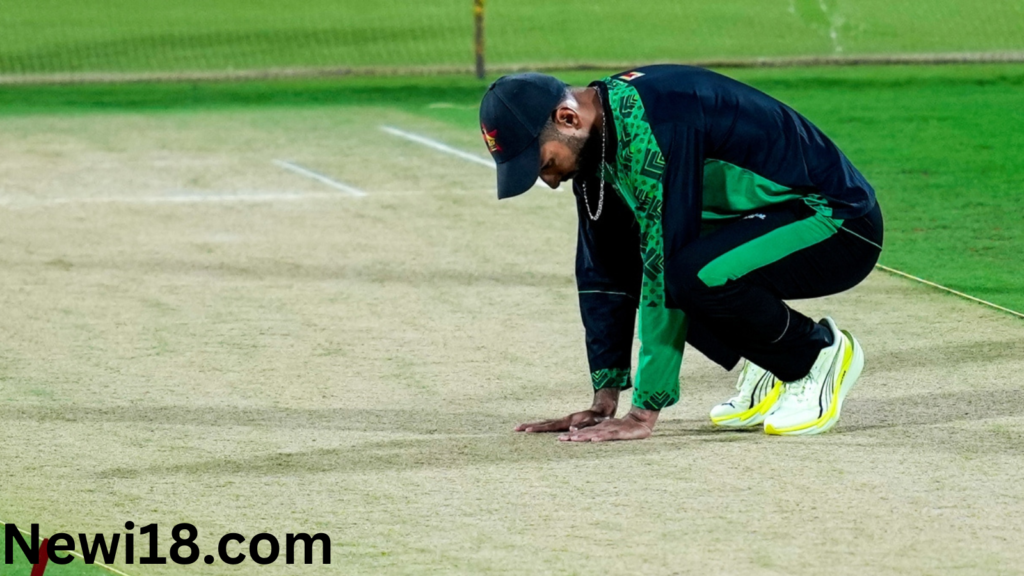 Zimbabwe’s captain Sikandar Raza inspects the pitch during a training session ahead of the ICC Men’s T20 World Cup 2026 cricket match between India and Zimbabwe, at MA Chidambaram Stadium, in Chennai, Wednesday, Feb. 25, 2026. (PTI Photo)